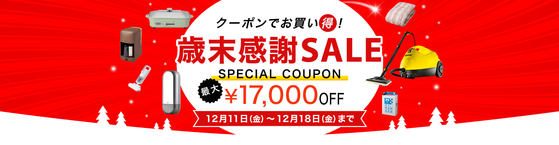 これからの年末年始に欲しい掃除家電・調理家電やおうちグッズを、今年一番のお買い得価格でご用意。