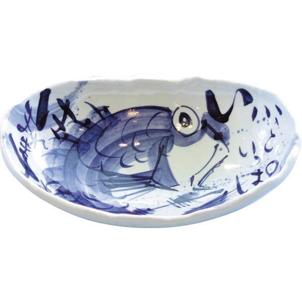 ダイナミックな青鯛を手描きにて描き上げています。ハレの日の御祝にめでたい鉢をどうぞ。
