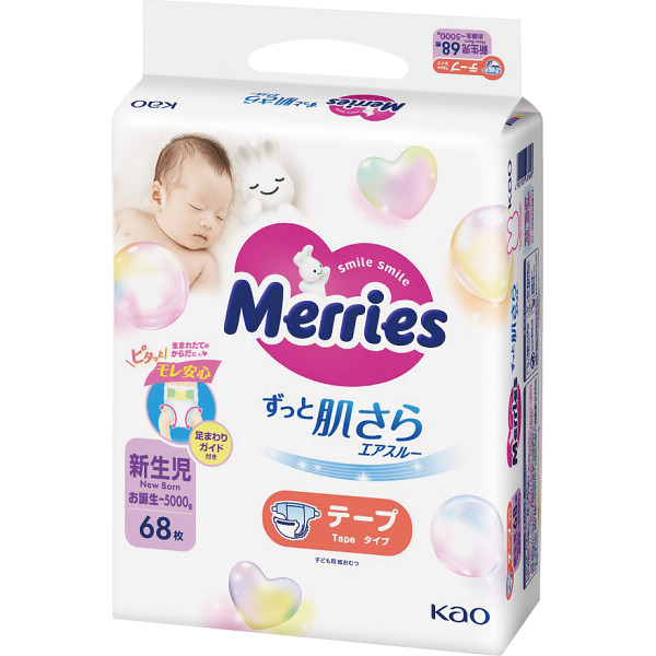 内容 ●メリーズエアスルーテープ新生児用5000gまで68枚 【ハコ無し】