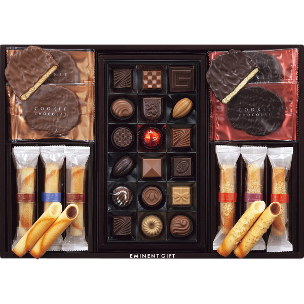 内容 ●エミネントチョコレート×18、コルベイユ×12、クッキーショコラ×4 【アレルゲン:卵・乳成分・小麦】 【化粧箱入】