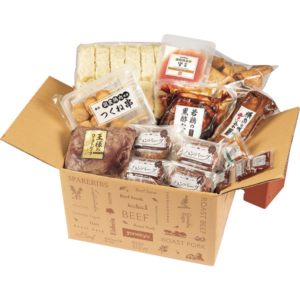 内容 ●王様のローストビーフ450g×1、ハンバーグ(牛肉・豚肉使用)130g×4、洋風デミグラスソース40g×2、和風シャリアピンソース40g×2、豚肉の味噌煮込み450g×1、若鶏の黒酢たれ300g×1、つくね串210g(6本)×1、ロース生ハム67g×1、瀬戸内六穀豚使用棒餃子480g(12本)×1、中華ちまき700g×1 【アレルゲン:卵・乳成分・小麦】 【ボール箱入】