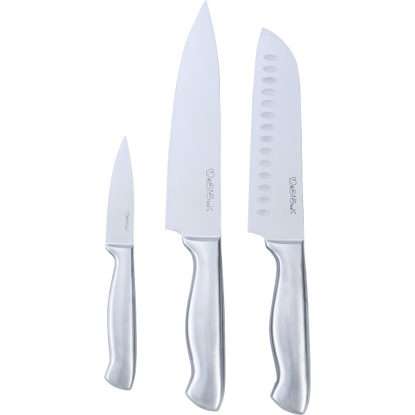 サイズ ●現品(ペティナイフ)全長約20cm・刃渡り約9cm、(三徳包丁)全長約30cm・刃渡り約17.5cm、(シェフナイフ)全長約32.5cm・刃渡り約20.5cm