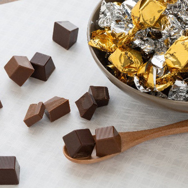 ベルギー産チョコレートを原料に、植物油脂など余分な増量剤を加えず、まろやかで芳醇なミルクチョコレートとカカオ本来の香りとほろ苦さを満喫できるダークチョコレートをミックスしました。高級チョコレートで有名な本場ベルギーのチョコは味が濃厚で口どけはとてもなめらかです。