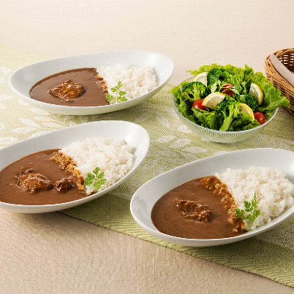 内容 博多とんこつビーフカレー、博多とんこつポークカレー、博多とんこつチキンカレー各180g×各2 【アレルゲン:乳成分・小麦・落花生(ピーナッツ)】 【袋入】