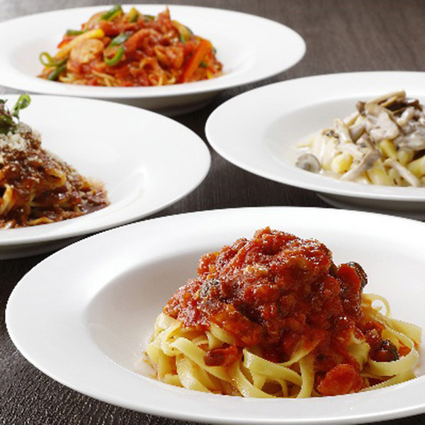 挽肉の存在感を香味野菜の爽やかな風味が引き立てる赤ワインで仕上げた上品な味わいのミートソース。トマトの奥深い甘みと酸味にベーコンの旨みがしっかり溶け込んだアマトリチャーナ。生クリームときのこの旨みがあふれる濃厚な4種のキノコのクリームソース。ハムの旨みと野菜の甘みが楽しめる昔ながらの王道ナポリタンソース。パスタと絡めて余すことなく旨みを味わっていただける4種のソースです。