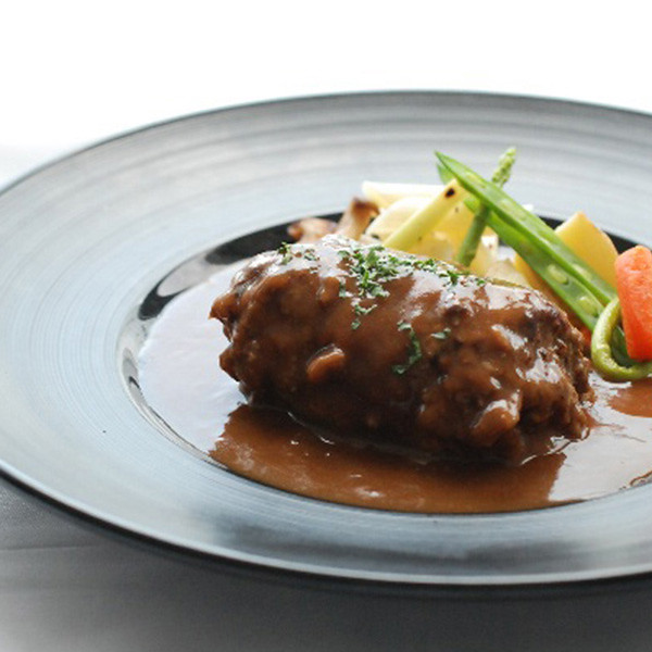 黒毛和牛本来の味わいと玉ねぎの食感を楽しめるやわらかくジューシーなハンバーグを、華やかな甘みのあるマルサラ酒を使用したソースで煮込みました。