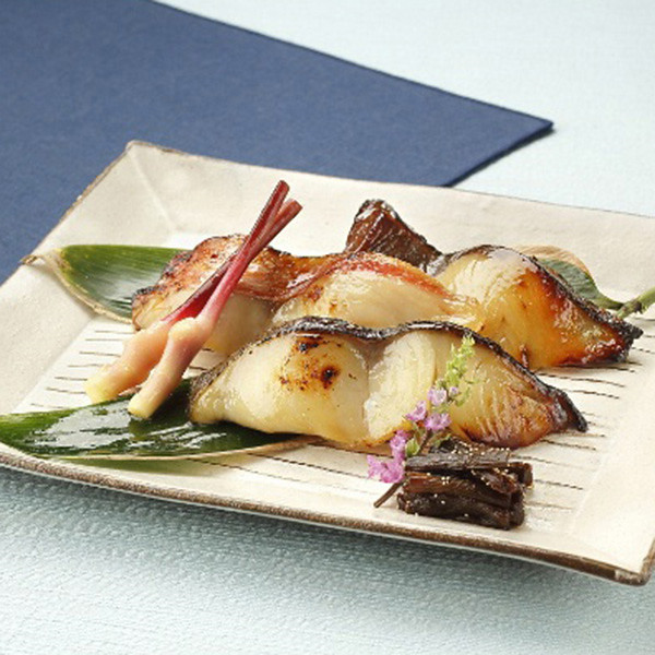 白味噌のほんのりとした甘みと香りが程よく染み込んだ西京漬です。長年にわたり、各界の有名人、著名人の舌を楽しませてきた「なだ万」の西京漬は、文人達の作品の中で「仕舞に彼は、灘万の…(中略)とかいうものを是非父に喰わせたいと言い募った。」(夏目漱石「行人」より)などと、愛され続けております。