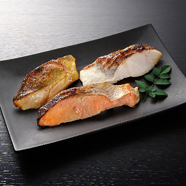 新鮮な海の幸を「粕漬け」、「西京漬け」、「甘味噌漬け」の三通りの漬け込みで仕上げました。どれも食欲をそそる一品です。
