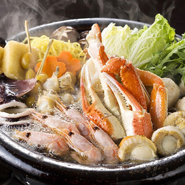 「ずわいがに」をはじめ「海老」や「帆立」などの魚介を詰め合わせ、各素材の旨味が活きる塩仕立ての鍋に仕上げました。シメは残りたれに「ラーメン」を入れてお楽しみください。ご自宅の野菜も一緒に煮込んでからお召し上がりください。