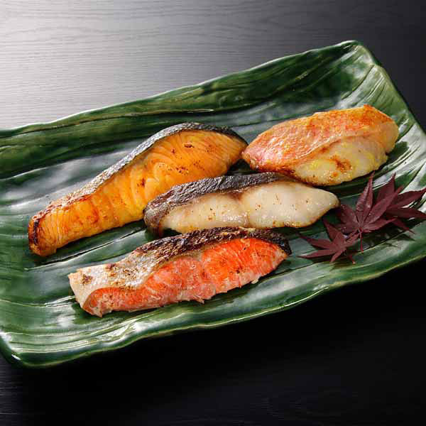 内容 紅鮭粕漬切身80g×3、銀鱈粕漬切身80g×4、キングサーモン西京漬切身80g×3、アラスカ吉次西京漬切身100g×4 【賞味期限:90日】 【発泡スチロール】