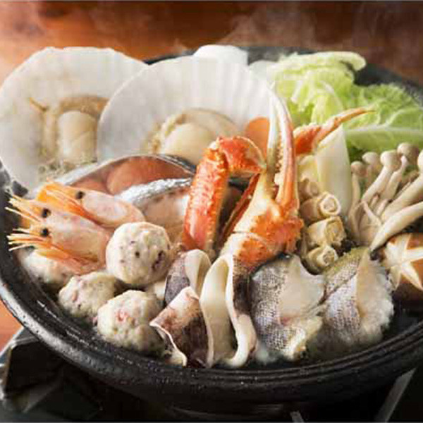 本ずわいがに、甘海老、帆立貝、いか等、新鮮な魚介を詰合せました。出汁のきいた醤油仕立てのたれでお楽しみください。ご自宅の野菜も一緒に煮込んでからお召し上がりください。