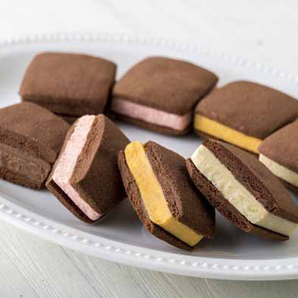 焼き塩を使用し、チョコレートの風味を引き出したさっくり食感のサブレ生地にフリーズドライのフルーツを混ぜ、焼き上げたフルーツショコラをサンドしました。