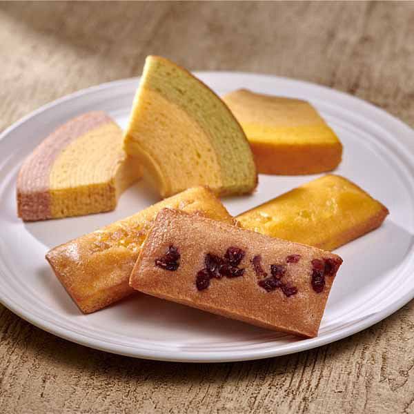 一層一層丁寧に焼き上げた生地と、果汁を加えて仕上げた生地の2つの味が絶妙なハーモニーの「フルーツクーヘン」。バターとアーモンドプードル、フルーツのピューレで焼き上げた「フルーツフィナンシェ」を詰合せました。