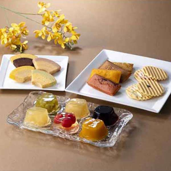 生地にフルーツピューレを混ぜ込み焼き上げたフルーツフィナンシェ。国産果汁を使用したフルーツゼリー。サクサクとした食感のワッフルにクリームをサンドしたヴァッフェル、さらにフルーツクーヘンをバラエティ豊かに詰合せました。