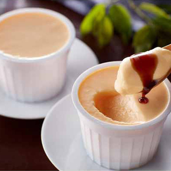 水たき料亭「博多華味鳥」で人気の卵ぷりんは、甘みと強いコクが特徴の「華味卵」を使用しております。濃厚で上品な甘さの卵ぷりん、黒みつをかけてお召しあがりください。