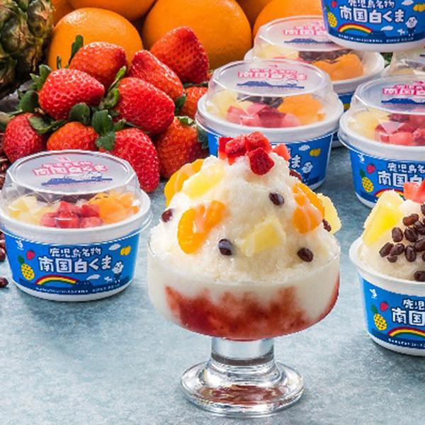 鹿児島の夏の風物詩「氷白熊」をギフトセットで全国のご家庭にお送り致します。「南国白くま」は一般的アイスクリーム類に使用されている乳化剤や安定剤を使用せずに、練乳かき氷に仕上げています。また香料を一切使用せず、練乳をふんだんに使用し、自然な練乳の風味を出しています。