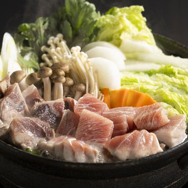 煮込むと美味しいまぐろの部位と醤油で仕立てたこだわりの鍋つゆのセット。まぐろの身・骨から出る絶妙な味をお楽しみください。