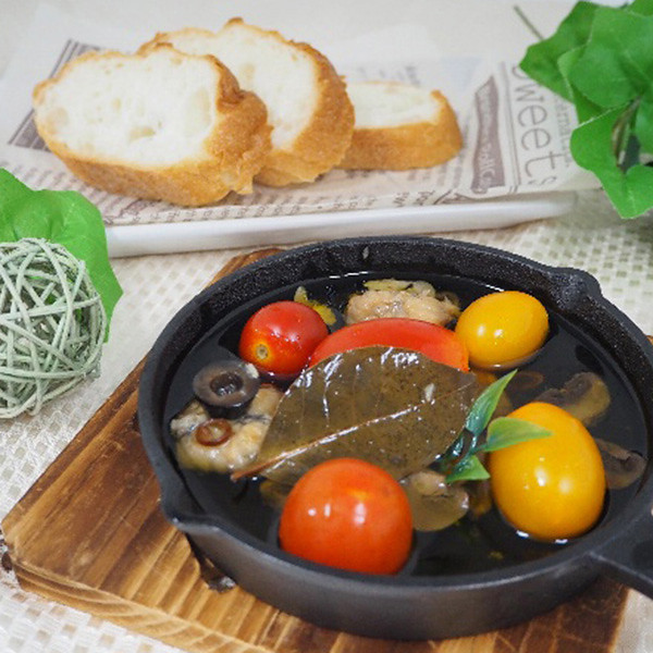 エクストラバージンオリーブオイル100%使用の海鮮アヒージョのセットです。真ふぐ・連子鯛・くじらそれぞれの海鮮の旨味を凝縮し、マッシュルーム・にんにく・オリーブ・唐辛子・ローレルで味付し、すっきりとした味わいに仕上げました。スキレットや小鍋などでお好きな具材をプラスして弱火で加熱してお召し上がりください。お好きな具材を加えても良し、残ったオリーブオイルはパンに染み込ませてお召し上がりください。