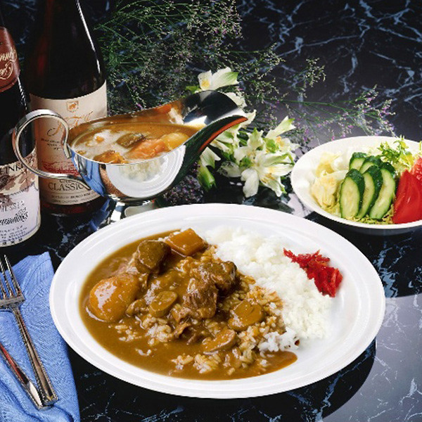 黒毛和牛の専門店人形町今半。黒毛和牛のすね肉をじゃがいも、マッシュルームと一緒にスパイスでじっくり煮込みました。レトルトとは思えないしっかりとした具材感と味わいが本格的なビーフカレーです。