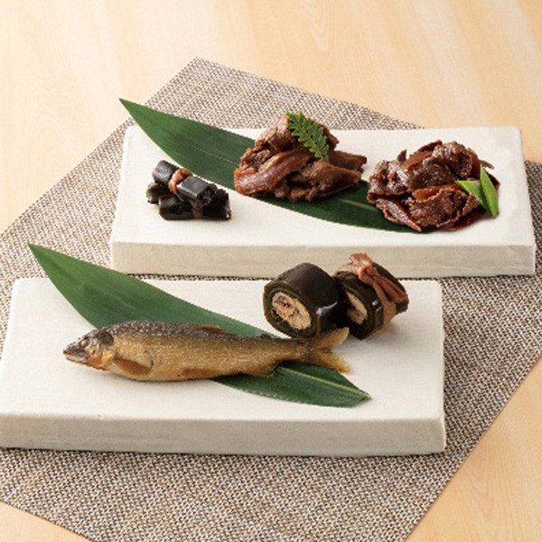 内容 鮎昆布巻190g×1、牛肉しぐれ70g×1、鮎すがた煮75g×1、牛肉ごぼう味噌煮70g×1、ひとくち昆布巻にしん入り100g×1 【アレルゲン:小麦】 【袋入】