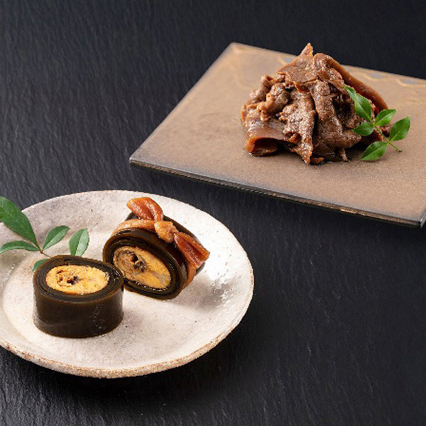 内容 牛肉しぐれ70g、鮎昆布巻190g 【アレルゲン:小麦】 【袋入】