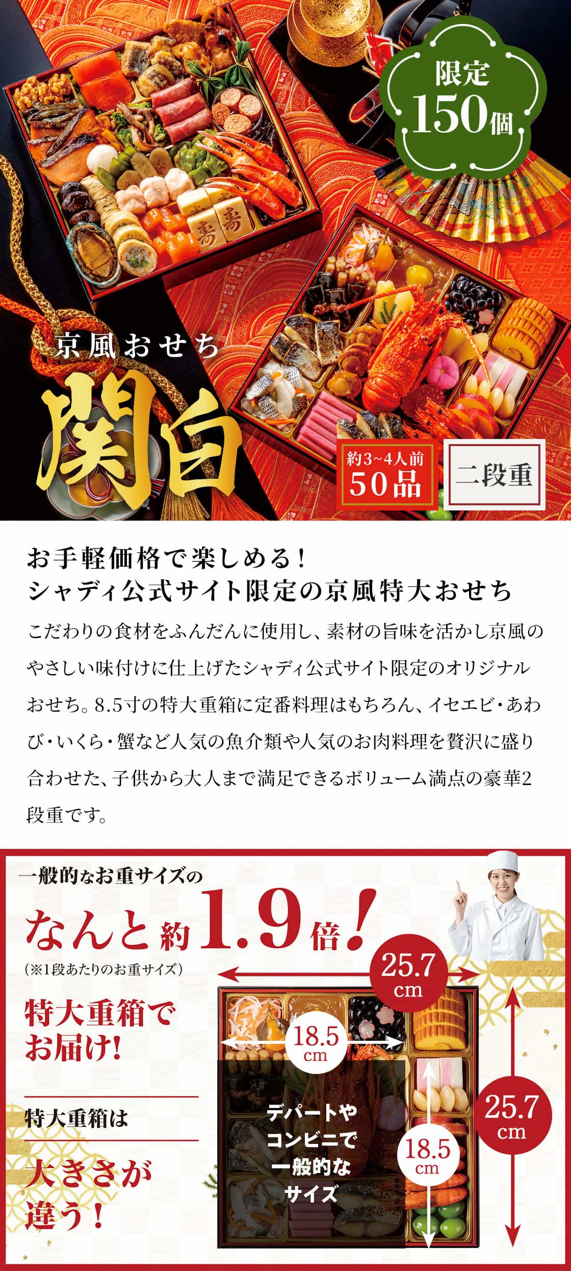 【早割】京風特大おせち【関白】二段重の商品説明