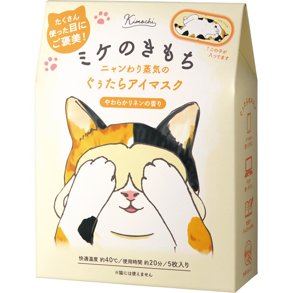 あったか心地よい蒸気で目と目元をじんわり温め、気分もほぐれるアロマタイプの温熱アイマスク。仕事やゲームなどでPC・スマホを使いすぎた時に。ほっとひと息つきたい時に。完全くつろぎモードのねこたちと一緒に、ぐぅたら気分でリラックスタイムを。やわらかリネンの香り。