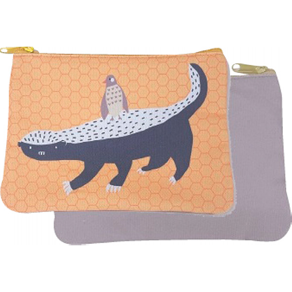 ゆるい表情のどうぶつがプリントされたかわいいポーチです。