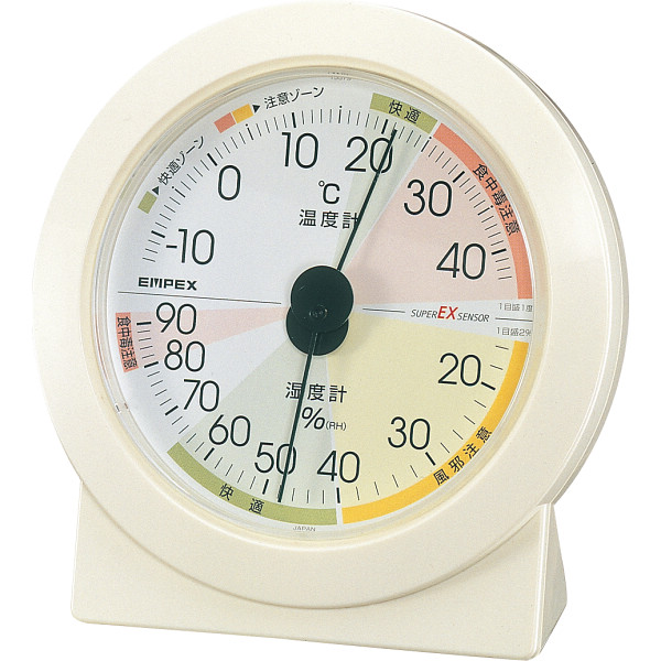 高精度の国産センサー搭載!ひと目でお部屋の温度・湿度が分かる温湿度計。快適ゾーンや注意ゾーン表示付きで、健康管理にも役立ちます。電池不要で簡単計測!