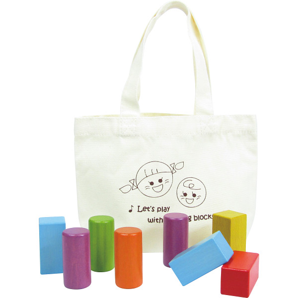 サイズ ●現品(収納袋)約25×28×7cm・(円柱つみき)約3φ×6cm・(四角柱つみき)約3×3×6cm