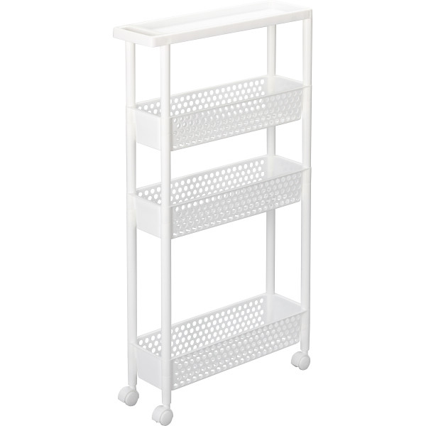 キャスター付で移動がラクラク行えるワゴンラック。樹脂製のため錆びず、軽量です。キッチン、倉庫、ランドリースペースなど、生活のスキマに収納をプラス。