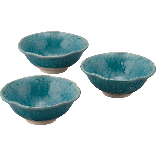 瀬戸焼 ブルーの貫入の入った花型の鉢が食卓を明るく演出します