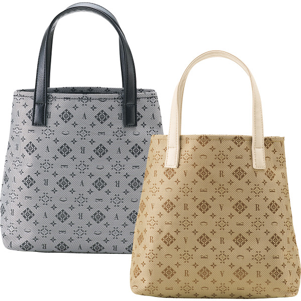 上品なモノグラムの生地を使ったミニトート。オープン式で出し入れスムーズ。スリムタイプで必需品がコンパクトにまとまります。