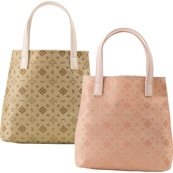 上品なモノグラムの生地を使ったミニトート。オープン式で出し入れスムーズ。スリムタイプで必需品がコンパクトにまとまります。