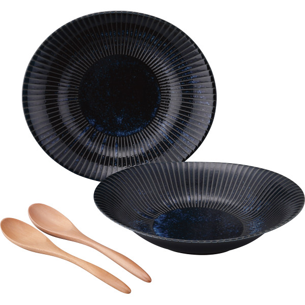 古窯群青 カレー皿ペア スプーン付の商品詳細