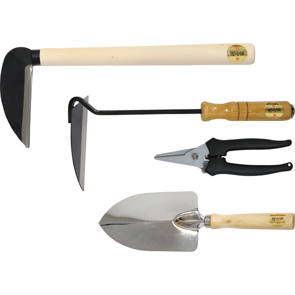 内容 ●根かき鎌・小鎌・スコップ・採収鋏×各1 【ボール箱入】 【完成品】