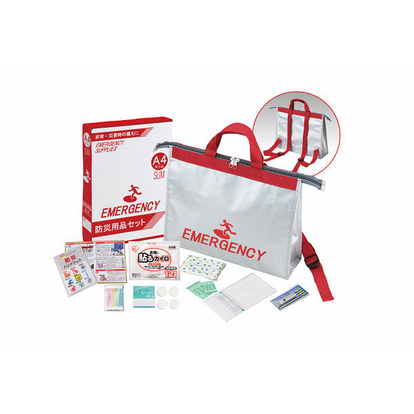 内容 ●トートリュック、ホイッスル、カイロ、マスク、圧縮おしぼり4個、綿棒10本、ポケットティッシュ、絆創膏、防災ハンドブック 【袋入】