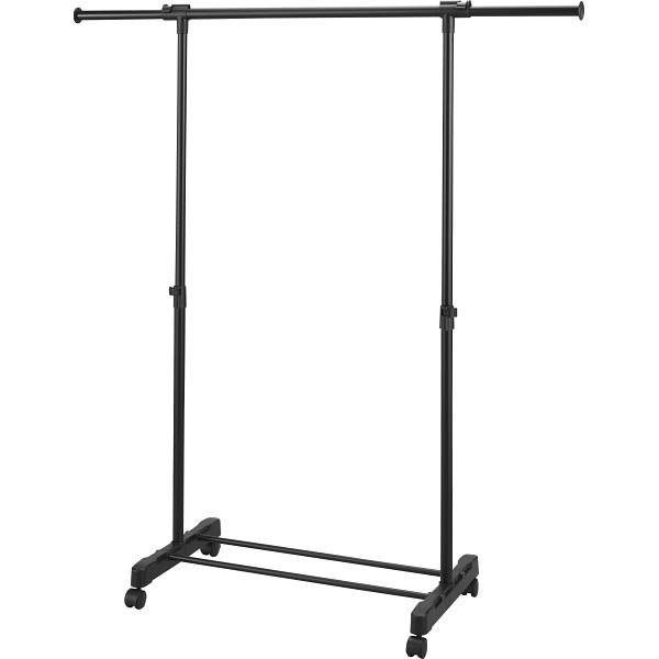 衣類の整理や保管に便利なハンガーラック。吊り下げ収納でシワになりにくい。キャスター付で移動が楽に行えます。玄関先ではアウター掛けに、リビングで衣類を掛けてワードローブのように収納できます。
