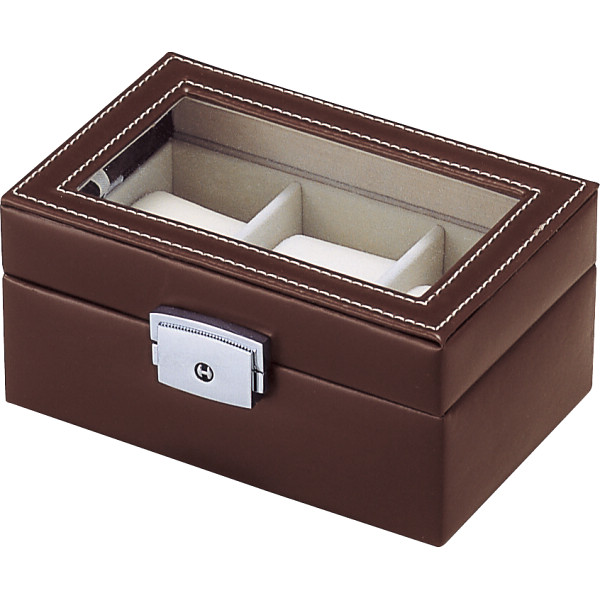 落ち着いた色合いと本革調PVCのしっとりとした質感が高級感を感じさせるウォッチケースです。男女問わず大切な腕時計を収納できます。(男女兼用)