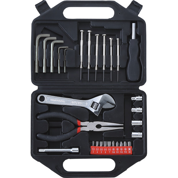 内容 ●精密ドライバー×6、六角レンチ×5、ソケット×4、ビット×10、エクステンションバー・ビットハンドル・調整レンチ・ラジオペンチ×各1 【化粧箱入】 【完成品】