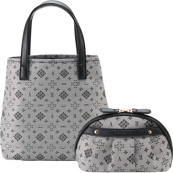 モノグラム生地を使った軽量ポーチとミニトートのセットです。
