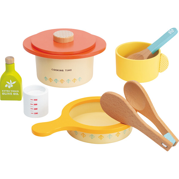 内容 ●おなべ、ふた(おなべ・フライパン共用)、フライパン、スープカップ、オリーブオイル、計量カップ、トング、おたま×各1●対象年齢:3歳~ 【化粧箱入】
