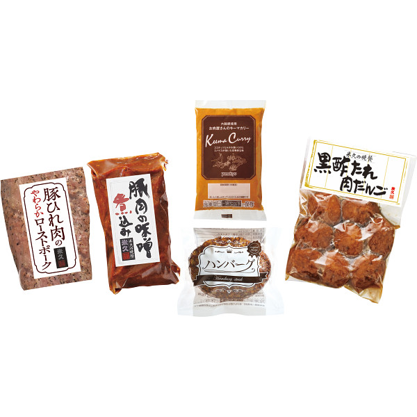 内容 ●豚肉の味噌煮込み210g×1、豚ひれ肉のやわらかローストポーク100g×1、ハンバーグ(牛肉・豚肉使用)130g×1、キーマカリー150g×1、黒酢たれ肉だんご300g×1 【アレルゲン:卵・乳成分・小麦】 【ボール箱入】