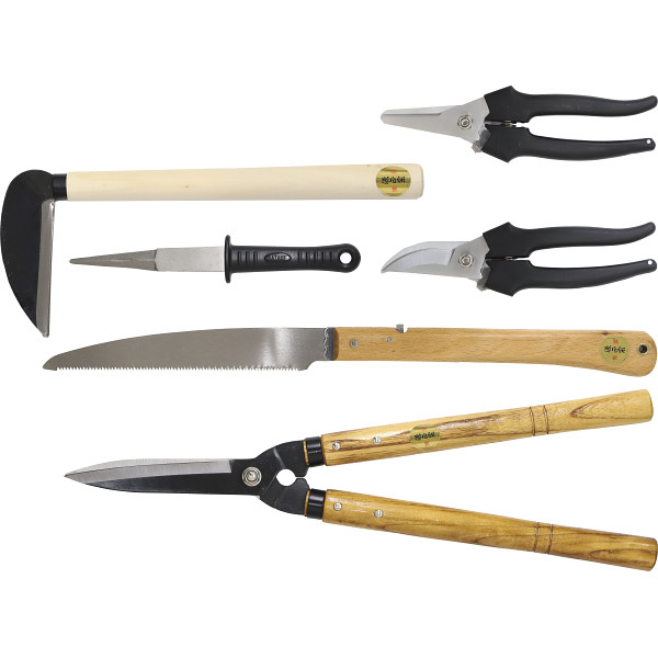 内容 ●刈込鋏=適応約10mmの枝まで●刈込鋏・折込鋸・剪定鋏・園芸鋏・小鎌・シャープナー×各1 【ボール箱入】 【完成品】