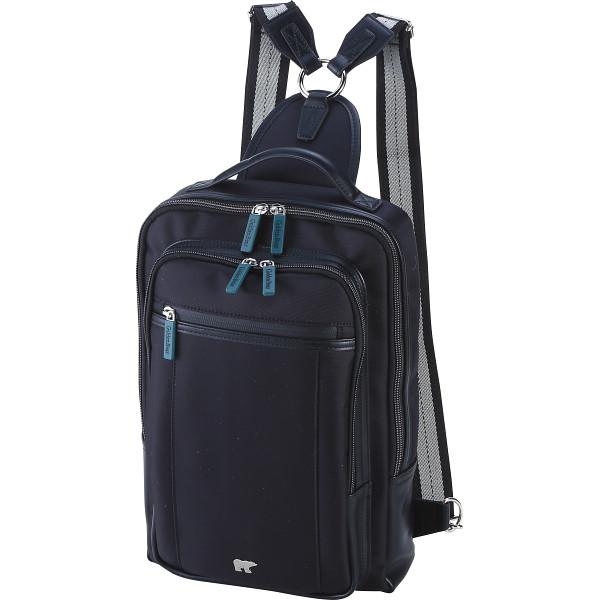 内容 ●外側=ファスナーポケット(オープンポケット2・ペンホルダー2・キーフック1)×1・ファスナーポケット×1・オープン式ポケット×1・内側=オープンポケット×1(パソコン収納)・ショルダーベルト付(着脱可・調節可)●開閉=ファスナー式(2気室) 【ボール箱入】