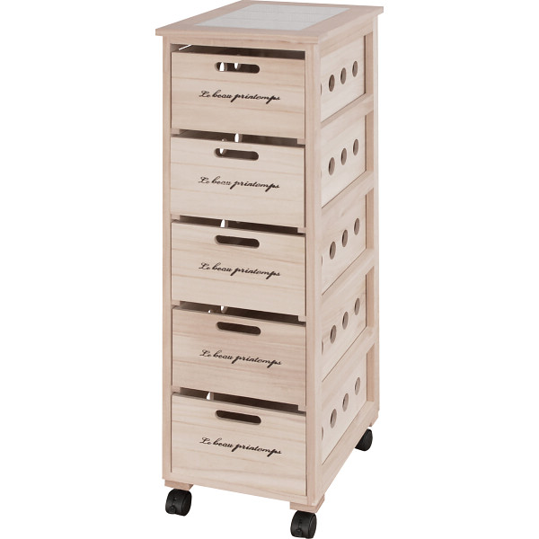 内容 ●引出し内寸=23×34.5×14cm×5●耐荷重=天板約5kg、引出し各段約3kg<メーカー調べ> 【ボール箱入】 【完成品】
