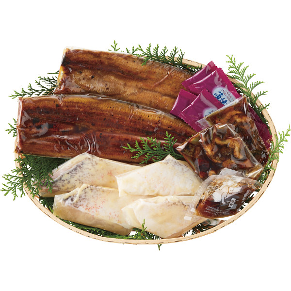内容 ●うなぎの蒲焼き(うなぎ:山梨県産)170g・うなぎの刻み(うなぎ:山梨県産)55g×各2、山椒付たれ×4、だし×2、西京漬け:白甘鯛(中国産)・赤甘鯛(ベトナム産)60g×各2 【アレルゲン:小麦】 【化粧箱入】