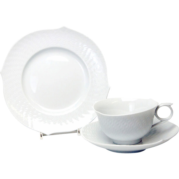 マイセン 波の戯れ ホワイト ティーカップ&ソーサー&ケーキプレートセット