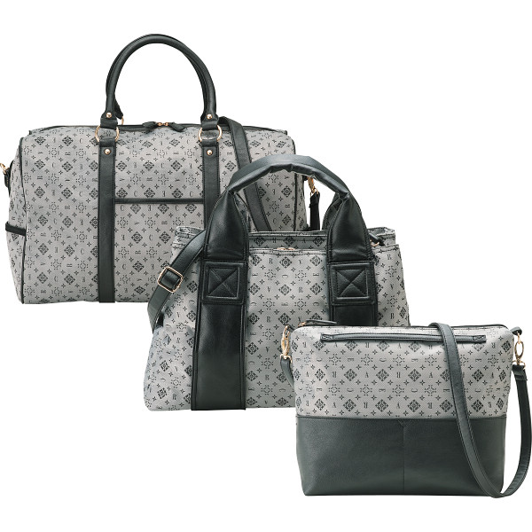 モノグラム生地を使った収納力たっぷりの軽量ボストンバッグとショルダーバッグのセット