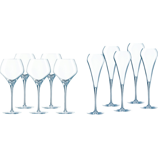 ■オープンナップシリーズは現代的でダイナミックなデザインにより、ワインを空気に触れさせて素早くアロマを開かせる「カラフェ効果」を持つグラス。立ち上がったアロマが上部で凝縮されるので、他にはないティスティングを体験できます。ホームパーティにぴったりなワイングラスとシャンパングラスのセットです。「優れた透明性」、「食器洗浄機使用後も持続する輝き」、「衝撃に強く、割れにくい」を兼ね備え、鉛を含まない環境